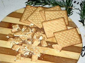 Amestecam biscuitii cu rahatul ,nucile si merisoarele si amestecam.